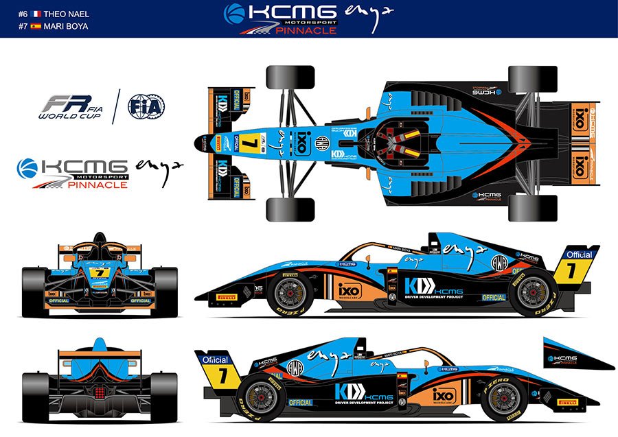 Accompanying KCMG ENYA by Pinnacle Motorsport in the FIA Formula Regional World Cup are KCMG, ENYA, IXO Models, Attachment Warehouse, LOH Motorsport, and Motorsport Ireland.