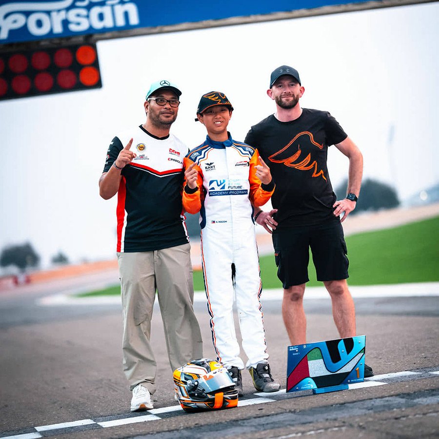 After more than a month of racing across the United Arab Emirates, Axel Nocom capped his Champions of the Future Academy Program (COTFA) season with his strongest performances yet. Coming straight from consecutive race weekends in COTFA UAE and the UAE RMC, the young Filipino rejoined the championship for Rounds 5 and 6—claiming a breakthrough Finals win at Al Forsan and finishing 7th overall in the OK-N Junior standings.