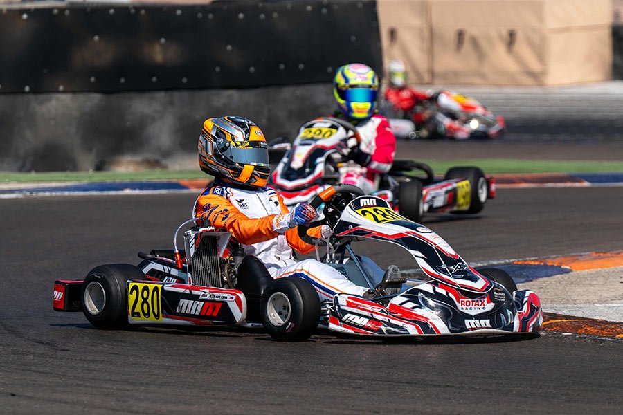 Axel was immediately on pace during practice. His extra time at Al Forsan clearly paid off as he settled in and ran with the front-runners. Driving under UAE-based MN Motorsport, he qualified P4—just behind familiar names Middle East O Plate karter Conor Clancy, Veer Chopra, and Mitansh Jain—setting himself up for a strong start to the day.