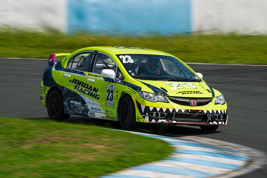 “Switching between the cars makes no sense at all,” he laughs, comparing the nimble, rear-wheel-drive Radical SR3 to a 1,200-kg front-wheel-drive Honda Civic FD on street radials. They couldn’t be more opposite — yet Mikey thrives on the contrast.